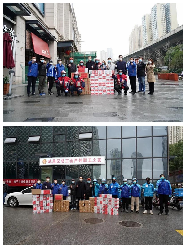 許鵬代表黃鶴樓酒業(yè)為騎手們送去口罩、防護(hù)服等近5萬元防疫物資,并叮囑他們做好個人衛(wèi)生防疫,在保障市民生活的同時,一定要做好自我保護(hù)。
