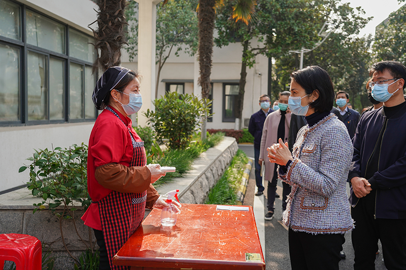 (圖為徐麗指導黃鶴樓酒業宿舍防疫工作)