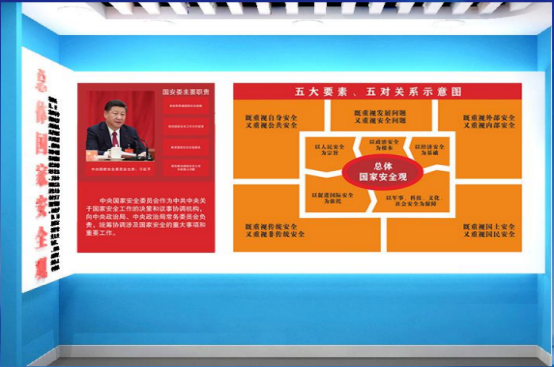 展廳一:展示了“總體國家安全觀”的誕生、內容、體系、制度、法律等內容,讓游客從整體上把握“總體國家安全觀”。