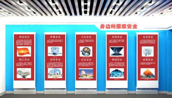 展廳二:從網絡、社會、金融、生態、政治五個方面深入剖析國家安全“總體國家安全觀”,將國家安全與每位參觀者緊密聯系。