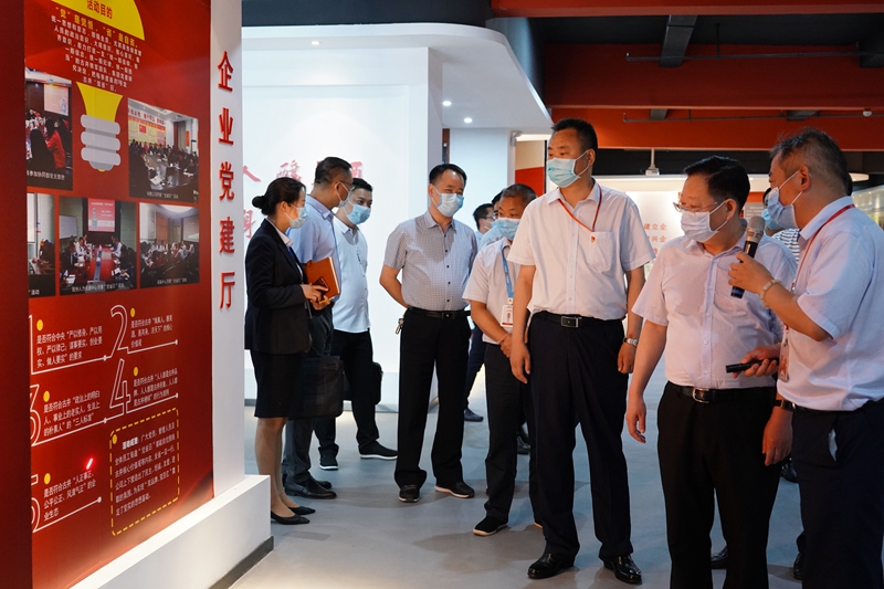 (向董永祥(右二)介紹公司黨建文化)