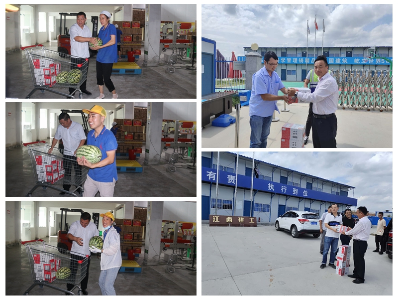 近日,隨州持續高溫天氣,黃鶴樓酒業黨委委員、隨州分廠廠長閔波平,釀造管理中心總監助理史健代表公司分別為車間員工、項目施工單位等送去古樂神曲、西瓜等消暑物資,為酷暑天堅持在一線崗位的員工送來一絲清涼。
