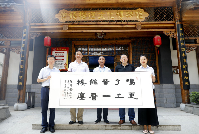 溫明春一行參觀了酒文化博物館、天成坊釀造車間、名人酒窖和黨建文化館等景點。在酒文化博物館,余建華向黃鶴樓酒業捐贈中國國畫院副院長、書法院副秘書長夏才俊題寫的書法。
