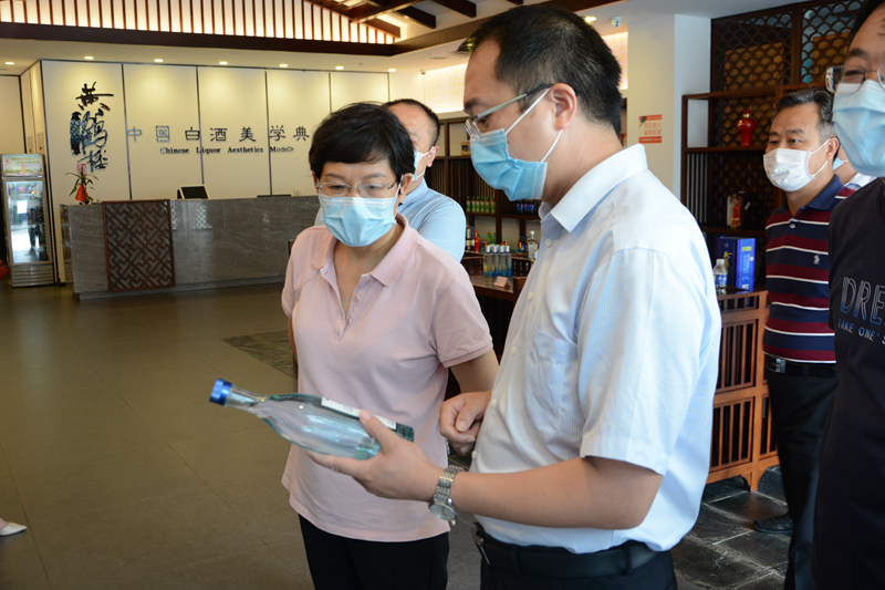 彭文潔一行查看了廠區的疫情防控措施,充分肯定廠區內防疫消殺等舉措的執行情況。在商貿中心,李良向彭文潔一行介紹黃鶴樓75度大清香的生產背景,并就黃鶴樓酒業在疫情期間捐獻防疫物資、踐行企業責任等情況作出匯報。
