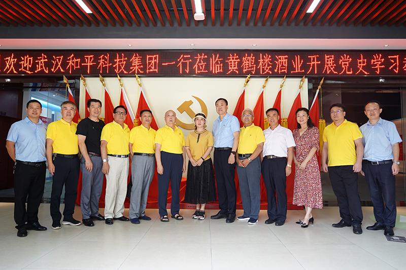 7月23日,武漢和平科技集團總裁黃海音,副總裁、工會主席甘國英,黨總支書記曹榮生帶領公司黨員、積極分子等50余人到黃鶴樓酒業開展黨史學習教育,黃鶴樓酒業黨委書記、董事長許鵬接待來訪。