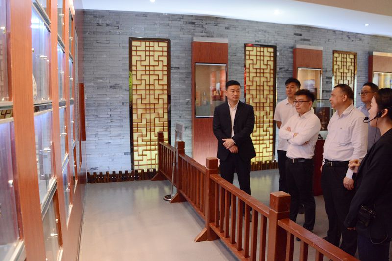 陳燚一行參觀了商貿中心、黃鶴樓酒文化館、美酒銀行等地,了解黃鶴樓酒業的產品布局和發展戰略。董華軍介紹了黃鶴樓酒業近年來的發展現況,李久洪介紹了黃鶴樓酒“好喝不上頭”的生產奧秘,并對黃鶴樓酒對酒體高質量、嚴要求的一系列質量標準做出說明。