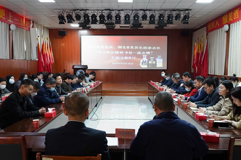 3月15日,湖北省藥監(jiān)局機(jī)關(guān)黨委、行政審批處黨支部與湖北黨員生活雜志社采編業(yè)務(wù)黨支部、綜合管理黨支部到黃鶴樓酒業(yè)聯(lián)合開展“學(xué)習(xí)兩會精神爭創(chuàng)一流業(yè)績”支部主題黨日活動,湖北省藥監(jiān)局機(jī)關(guān)黨委專職副書記艾修偉,行政審批處處長張學(xué)義,湖北黨員生活雜志社社長、總編輯張小燕,黃鶴樓酒業(yè)黨委委員、副總經(jīng)理魏國出席活動。