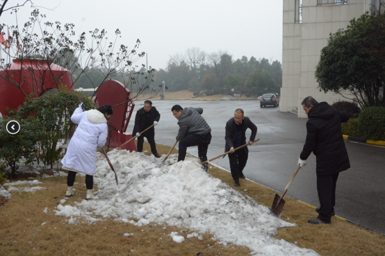 在咸寧分廠,公司黨委委員、咸寧分廠廠長兼采購中心總監謝毅帶領10余名志愿者開展義務勞動,將廠區內臟污的雪堆攤開,加速融化,為后續前來參會和參觀的游客提供一個整潔美觀的環境。