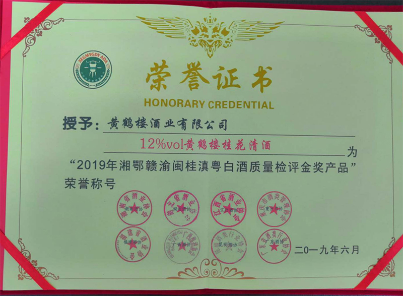 近日,在第十一屆酒類質量檢評會上,黃鶴樓酒業“42%vol黃鶴樓五樓”榮獲“2019年湘鄂贛渝閩桂滇粵白酒質量檢評信得過金樽獎”稱號,“12%vol黃鶴樓桂花清酒”榮獲“2019年湘鄂贛渝閩桂滇粵白酒質量檢評金獎”稱號。