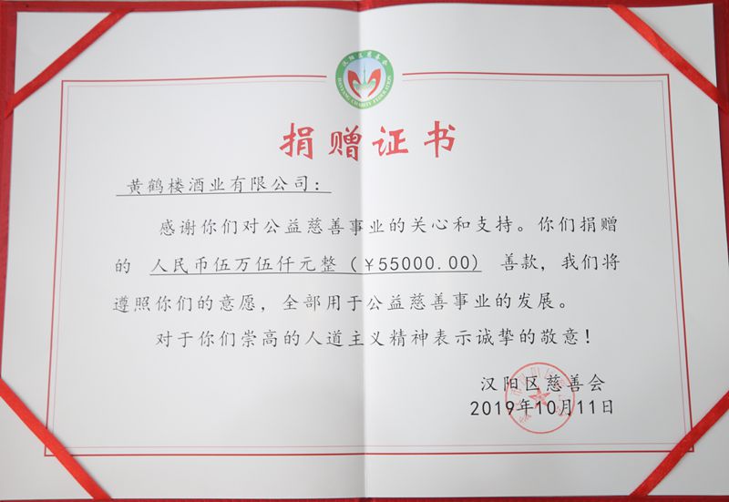 近日,黃鶴樓酒業(yè)“金暉助學”共資助11名貧困大學生,捐出助學金5.5萬元,漢陽區(qū)慈善會特授予捐贈證書。